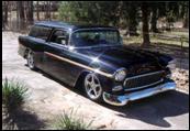 This Custom project involved combining a stylized Nomad body atop a late model Corvette chassis and engine. A full leather corvette interior was installed, and augmented to fill out the Nomad. |